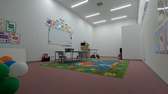 完成したばかりの新しいお教室です。窓の外からもお子様のレッスン様子を見ていただけます。