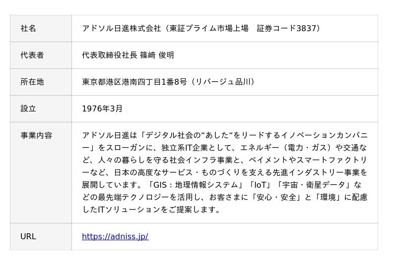 アドソル日進様とはGISソフトウェアの開発からはじまり、お客様が抱える課題解決に向けたビジネス共創を進めてまいりました。今回、戦略的パートナーシップを締結することで、IT技術開発体制を強化し、ビジネス基盤および商品サービスのセキュリティ強化やAI技術などの最新技術を取り入れ、地理空間情報技術のDX、商品サービスの価値向上を推進してまいりたいと考えております。