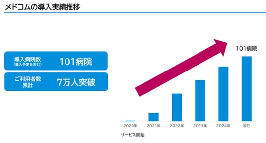 そしてこの度、「メドコム」は以下の点を評価いただき、100施設の医療機関、累計利用者数が7万人を突破いたしました。