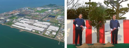 (写真左)九州製造所 外観、(写真右)植樹の様子
