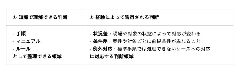 そして判断は体系化されず、熟練者の経験に依存する構造が生まれます。