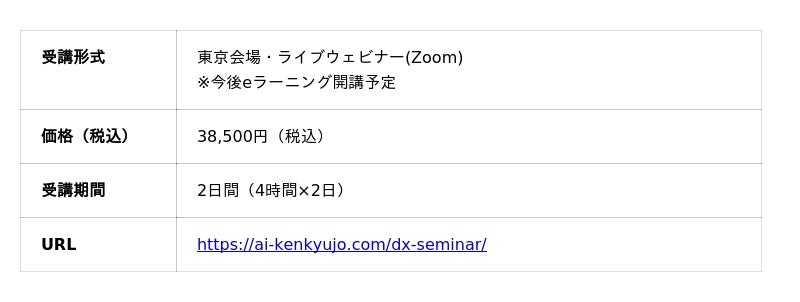 この度、DXの基本概念から業務への実践的な活用方法までのDX推進の実務スキルを体系的に学べる「DXビジネススキルセミナー」を開講いたしました。