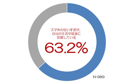 スマホの使いすぎが自分の生活や健康に影響していると感じる人が63.2%
