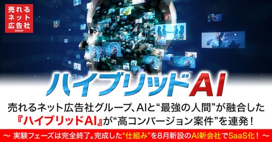 売れるネット広告社グループ、AIと“最強の人間”が融合した『ハイブリッドAI』が“高コンバージョン案件”を連発!~ 実験フェーズは完全終了。完成した“仕組み”を8月新設のAI新会社でSaaS化! ~