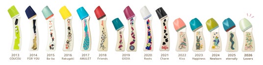 毎年、デザイナーと共に心を込めて作り上げる干支ボトルは、生まれてくる赤ちゃんとご家族に喜んでいただけるよう、赤ちゃんへの願いと思いを込めて大切にお届けしています。