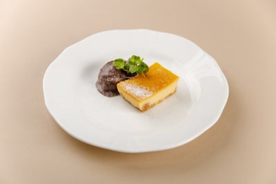 植物生まれのベイクドチーズケーキ アサイー豆乳アイス添え ランチセットデザート400円(税込) アラカルト500円(税込)植物生まれのベイクドチーズケーキに、優しい甘さのアサイー豆乳アイスを添えてヘルシーだけどコクのある味に仕上げました。