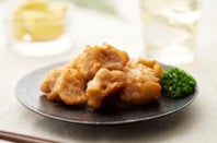 おにゃくから揚げ豆乳や豆腐を作る際の副産物「おから」と日本の伝統食である「こんにゃく」を組み合わせた『おからこんにゃく(R)』で作った動物性原材料不使用のから揚げです。おかずの一品としても満足いただけるよう、和風ベースで飽きの来ない、ジューシーな味わいに仕上げました。