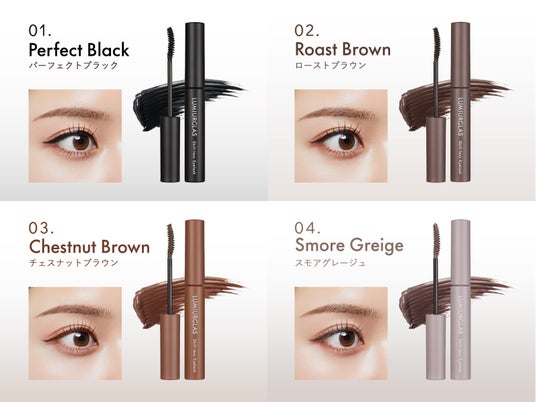 すべて、LUMIURGLASの「スキルレスライナー」と同色設計で開発。マスカラとアイライナーを同色で揃えるだけで、目もとに自然な統一感と洗練された”ワントーンアイ”が生まれます。