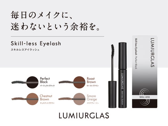 【新商品】LUMIURGLASから、ブランド初のマスカラ「スキルレスアイラッシュ」が全4色展開で新登場!人気のスキルレスライナーと同色展開で統一感のある“ワントーンアイ”へ。