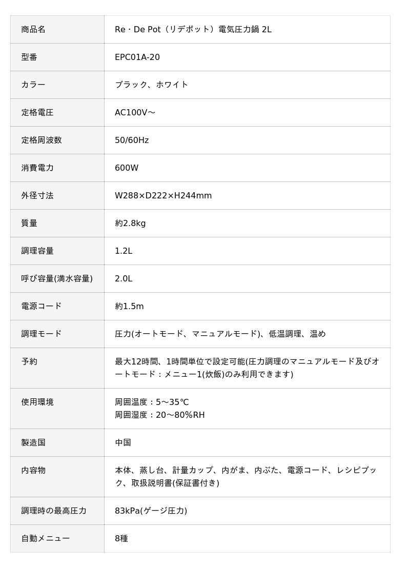 「Re・De Pot」が目指したのは、電気圧力鍋の枠を超えた「炊飯革命」です。最大1.8気圧の高圧を保ち100℃以上の高温で一気に炊き上げることで、わずか25分でお米の甘みと香りを最大限に引き出します 。内釜には遠赤外線効果が高いセラミックコートを新たに採用し 、ふっくらと粒立ちの良い、まるで高級炊飯器で炊いたような濃密な味わいを実現しました 。