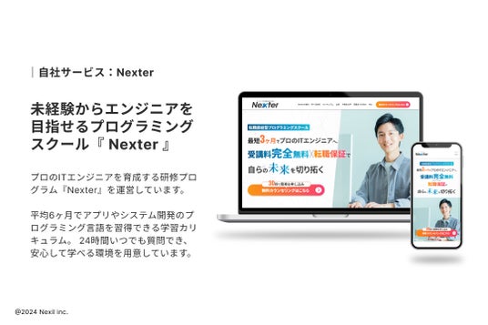 株式会社Nexil (東京都渋谷区、代表取締役:鈴木将吾、以下Nexil) は、オンラインプログラミングスクール『Nexter』をリリースいたしました。