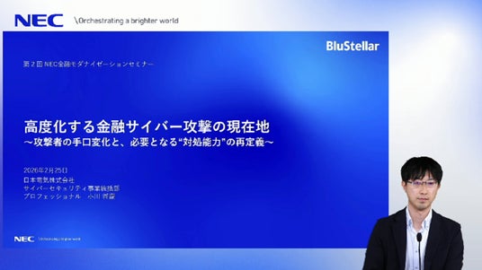 NECは、2026年2月25日に金融機関を対象とした「第2回 NEC金融モダナイゼーションセミナー」を開催、地域金融機関や信用金庫など41社に参加いただきました。