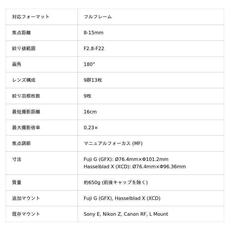 LAOWA 8-15mm F2.8 FF Zoom FisheyeFuji G (GFX)マウント、 Hasselblad X (XCD)マウント
