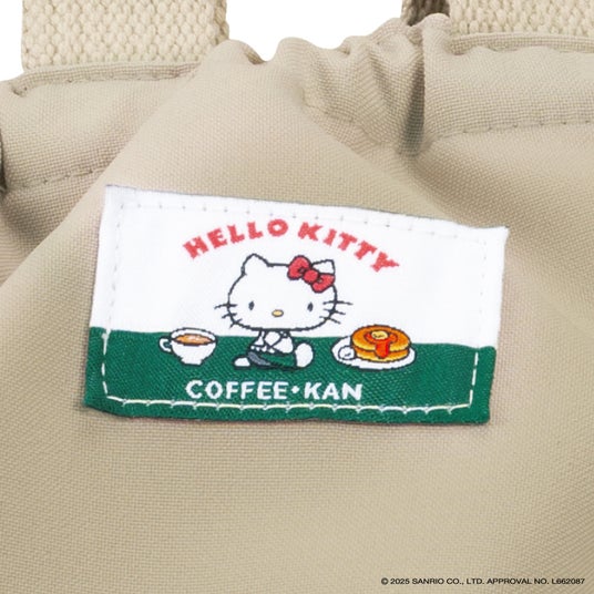 冬にぴったりの、もこもことしたボア素材と軽やかなナイロン素材を組み合わせた「ボア巾着バッグ」。カラーバリエーションは、どんなコーディネートにも合わせやすいブラックとベージュの2色展開です。巾着ならではの丸みのあるフォルムが上品で愛らしく、紐を引くだけで簡単に開け閉めが可能です。さらに、紐を長くして肩にかければショルダーバッグとして、持ち手部分に腕を通せばハンドバッグとして、気分やシーンに合わせて2WAYでお使いいただけます。コンパクトな見た目ながら底マチがあるため、収納力も抜群です。バッグの中央には、1970年代のデビュー当時のハローキティのデザインをベースに、『珈琲館』の世界観を取り入れたネームタグをステッチ。珈琲館の制服を着たハローキティと『珈琲館』の看板商品「トラディショナル・ホットケーキ」をあしらいました。ハローキティの世界観に溶け込むよう、オリジナルでデザインしています。