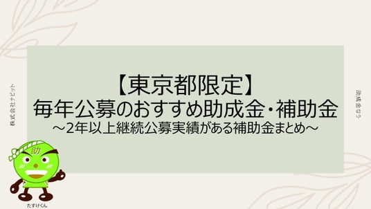 【10/24より】「【東京都限定】毎年公募のおすすめ助成金・補助金~2年以上継続公募実績がある補助金まとめ~」の販売を開始しました【助成金なう】