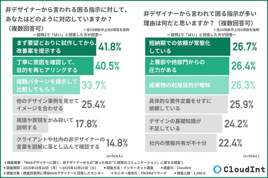 CloudInt(所在地:東京都港区)は、現役Webデザイナーを対象に、「Webデザイナーに聞く、非デザイナーからの“困った指示”と理想のコミュニケーション」に関する調査を行いました。