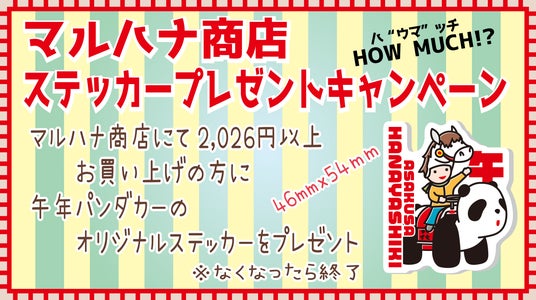 【HOW MUCH(ハ“ウマ”ッチ)?!マルハナ商店 ステッカープレゼントキャンペーン】