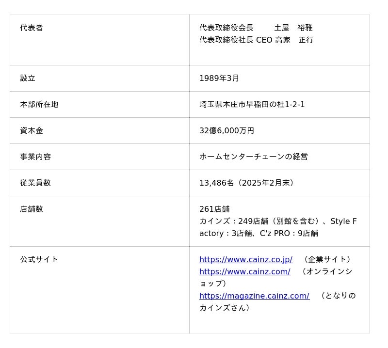 株式会社カインズは、29都道府県下に261店舗を展開するホームセンターチェーンです。