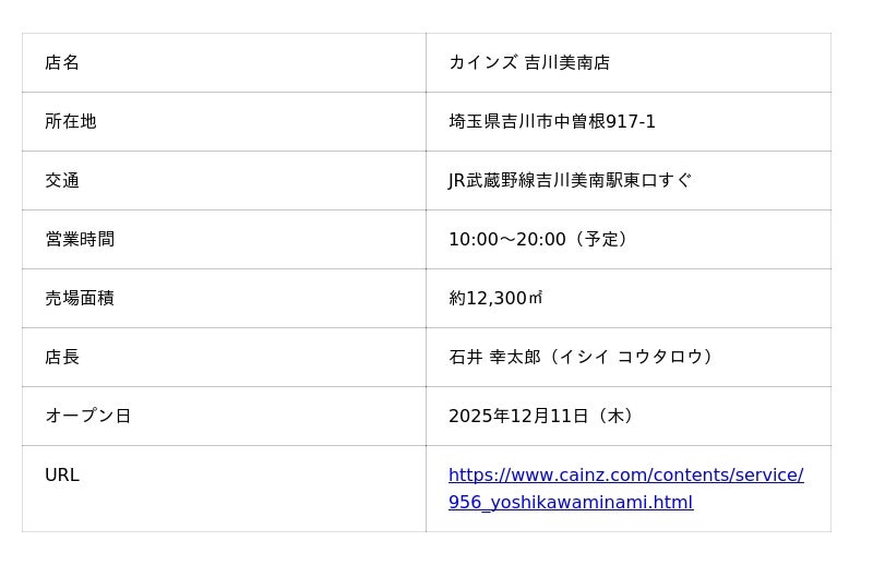 カインズ 吉川美南店特設ページ:https://img.cainz.com/jp/promotion/956_yoshikawaminami.html