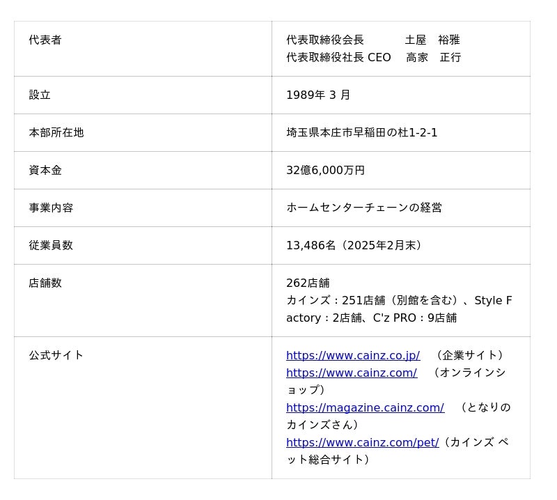 ニュースリリース:https://www.cainz.co.jp/news/13330/
