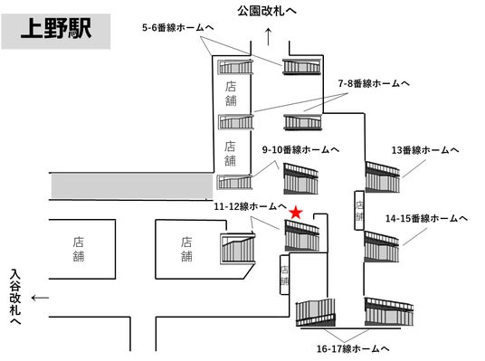 4.上野駅(改札内 3Fコンコース 11‐12ホーム行階段/エスカレーター横) ※営業開始予定日11/12~