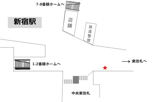 1.新宿駅(改札内 B1Fコンコース 中央東改札横ロッカー付近) ※継続営業