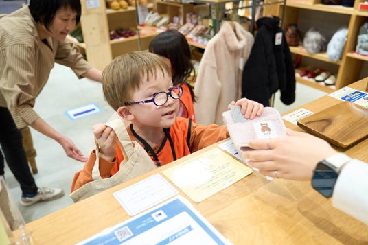 お店に到着すると、数種類のハンカチの中から購入する商品を選ぶのに、悩むことなくすぐに選べた子がほとんどでした。「ぼくはハンカチいっぱい持っているからママにプレゼントするんだ!」とご家族のプレゼントとして選ぶ子も。レジでお金を差し出す瞬間は、ドキドキした表情をしながらも、買い物を終えるとほっとした笑顔に変わっていました。