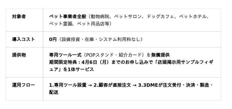 なお、2026年3月24日(火)~2026年4月6日(月)の2週間、円滑なサービス開始をサポートする「ペットフォトフィギュア」導入支援キャンペーンを実施いたします。