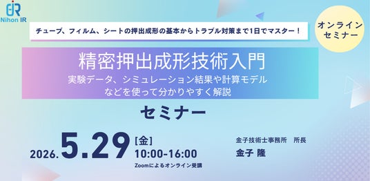アイアール技術者教育研究所は、押出成形に初めて携わる技術者のためのオンライン講座「精密押出成形技術入門」を開催します。