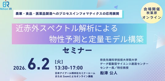 アイアール技術者教育研究所は、品質管理に欠かせない特性値・含有量の予測を、近赤外線スペクトルを活用してリアルタイム化する考え方と手順を、農業・食品・医薬品製造などの産業事例を交えながら解説する公開セミナーを開催します。