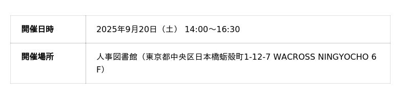 株式会社Trustyyle(本社:東京都中央区・代表取締役:吉田洋介)は、2025年9月20日に運営するコミュニティ「人事図書館」にて、「HRBPについて語る会 ~“事業と人事の橋渡し”のリアルを探る~」を開催しました。堀口 修吾氏ら現役HRBPによる話題提供や参加者同士のディスカッションが行われ、盛況のうちに終了しました。本記事では、イベント当日の様子や成果についてご報告します。