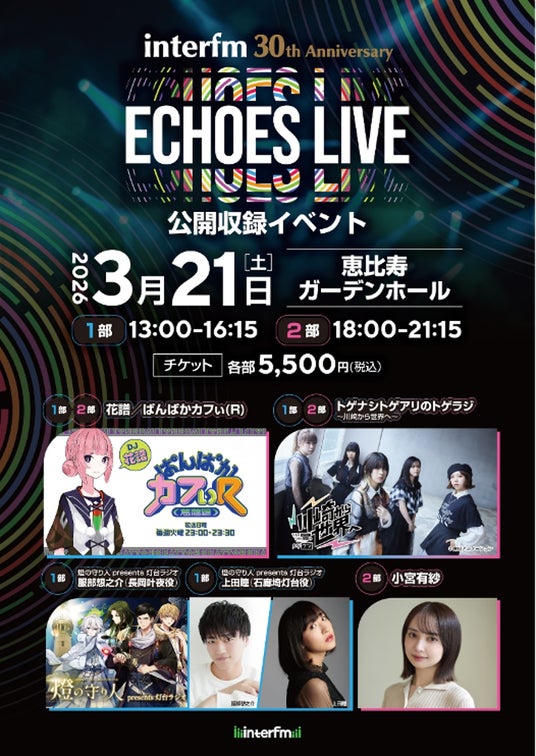 ・イベント名:interfm 30th Anniversary 『ECHOES LIVE』 公開収録イベント・開催日程:2026年3月21日(土)