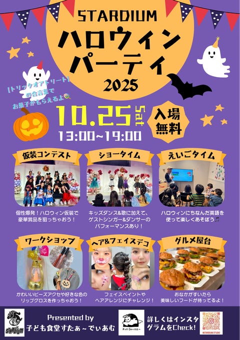 ハロウィンパーティ @STARDIUM門前仲町のSTARDIUMにて子どもが楽しめるハロウィンイベントを開催。ショータイムとしてさまざまなダンスに加えて、仮装コンテストも実施予定です。
