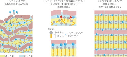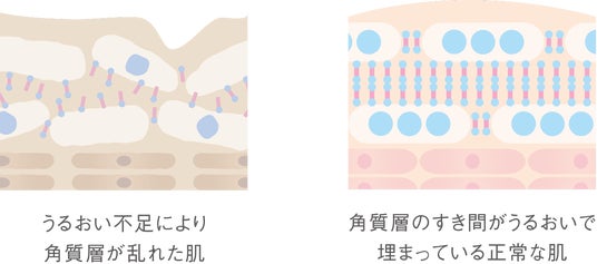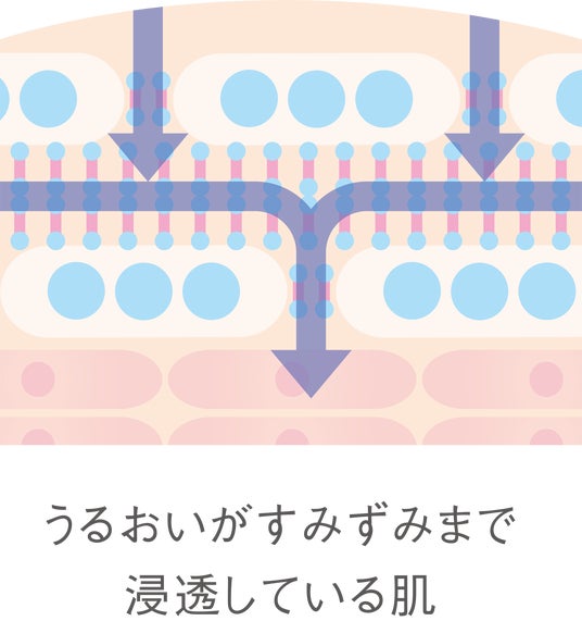 ピュアセリシンの新技術「ラメラストレートリペア技術」※によって、つけた瞬間、乱れた角質層のすき間をすみずみまでうるおして整え、保持します。