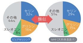 また、肌にある天然保湿成分(NMF)とアミノ酸組成がそっくり(図3)のため、NMFと同じ様な働きがあり、肌にうるおいを与えます。