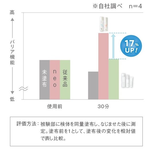 コモエース ネオの2品は従来品の3品使用と比較してもバリア機能がアップすることが分かりました。