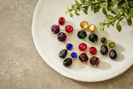 生き生きとした透明感と光のゆらぎが人気の、まるでキャンディのような「バイカラーガラス」シリーズに、新たな配色が加わりました。ホリデーシーズンらしい鮮やかな色の組み合わせが、顔まわりをぱっと明るく照らし、着こなしに季節感と華やぎを添えます。揺れ感が醸し出す柔らかな光をお楽しみください。ピアス・イヤリングで展開し、ギフトにも最適なアイテムです。