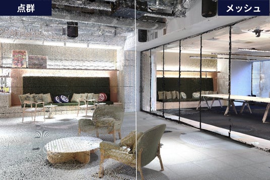 点群データと3D生成後のメッシュデータ