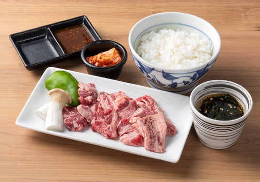 10月の肉の日企画は、2025年10月27日(月)から10月31日(金)までを「幸せの5日間」とし、期間限定で平日の11時から16時に販売している焼肉ランチのオススメメニュー「人気の中落ちカルビランチ」と「特製辛ニンニクだれ 中落ちカルビランチ」を通常価格1,280円(税込1,408円)のところ、「いい肉」になぞらえた1,129円(税込1,241円)で販売します。更にこの2種類焼肉ランチに限りご飯のお替りが何杯食べても無料です。