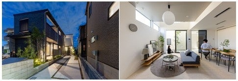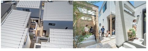 くった全5棟の分譲住宅です。後退部分を活用した外部空間をデザインし、空間を感覚的
