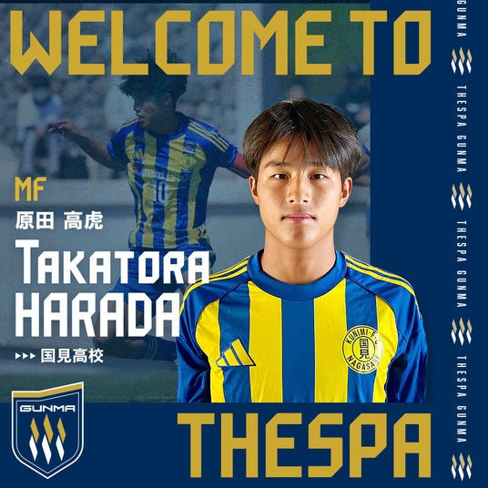 「はじめまして、2026シーズンよりザスパ群馬に加入することになりました、国見高校の原田高虎です。夢だったプロサッカー選手のキャリアを、ザスパ群馬という素晴らしいチームでスタートできることをうれしく思います。家族やこれまで熱い指導をしてくれた指導者の方々、そして国見familyには結果として恩返しできるように頑張ります。ザスパ群馬のために精一杯頑張りますので応援よろしくお願いします」