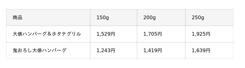 ※価格は全て税込です。※写真の大俵ハンバーグは200gです。