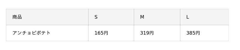 ※価格は全て税込です。※写真はSサイズです。