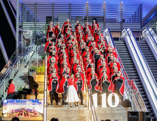 2025年12月11日(木)に、八重洲口 改札外 グランルーフ 大階段特設会場にて、東京駅111周年記念クリスマスコンサートを開催します。今年はゲストに俳優・歌手の瀧本美織さんを迎え、東京駅で働く人々で結成された「東京エキマチ合唱団※」と、ゴスペルを主とするコーラスグループ「The Voices of Japan(ザ・ボイセス・オブ・ジャパン)」など、総勢約100名によるコンサートを披露いたします。合唱経験のある人、ない人、様々な企業・団体の“合唱素人”で結成されたメンバーで、専門家の指導の下、日頃の業務の合間を縫って、練習を積み重ねてきました。当日披露する曲は、ベートーヴェン交響曲第9番第4楽章の主題旋律を元に作られた讃美歌の1つである、『Joyful,Joyful』をはじめ、この季節にぴったりなクリスマスソングを予定しています。