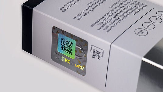 クルツグループのSCRIBOSによる独自開発技術を使ったセキュリティホログラムラベル。他に類を見ない独自のホログラム技術により、可変コードを印字ではなくホログラム状に表記し、QRコードと組合せることで、より強固なセキュリティ対策が可能です。専用アプリも不要で、誰でもスマートフォンで簡単に認証を行えます。スマートフォンでQRコードを読み取った後、画面に表示されるホログラムラベルのアニメーションと実際のラベルを比較して確認する仕組みで、消費者や小売業者が偽造品を確実に識別できます。また、このセキュリティホログラムには、税関職員等専門家向けの機能として隠し情報も含まれており、セキュリティレベルを段階的に設定することが可能です。