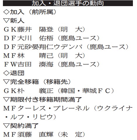 午後はサーキットトレーニングを行った後、対人のパス精度を高めるメニューをこなした。選手たちは照明に灯がともる午後5時過ぎまでミニゲームで汗を流した。全体練習に参加したのは負傷明けのMFチャブリッチ、MF師岡、MF松村の3人を除く30人。昨季は負傷離脱していたDF関川はフルメニューをこなし、DF安西も部分的な合流でそれぞれ順調な回復ぶりを示した。