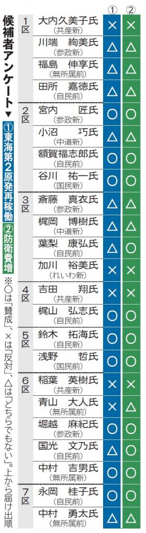 《2026衆院選》東海第2再稼働 賛成9人 防衛費増は11人 茨城県内7選挙区候補者アンケート