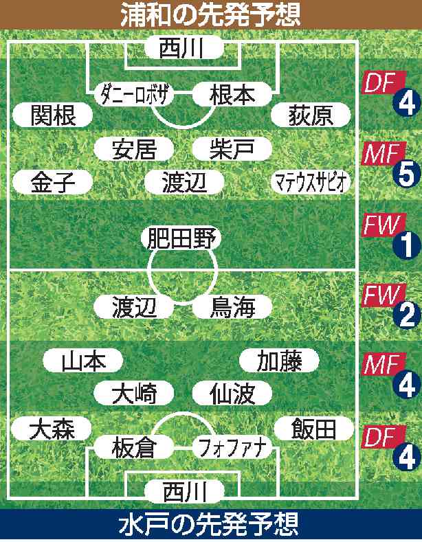 明治安田J1百年構想リーグ第5節第1日は7日、各地で6試合が行われ、東地区7位の水戸は埼玉スタジアムで4位浦和と対戦する。キックオフは午後3時。水戸の今大会通算成績は1勝3敗(うちPK勝ち1、PK負け2)、勝ち点4。