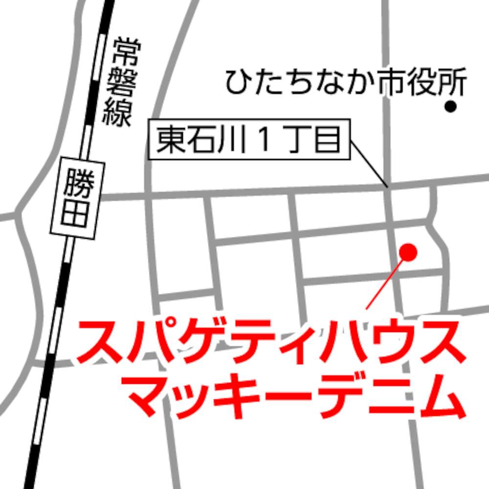 茨城県ひたちなか市東石川3丁目のスパゲティハウスマッキーデニムは、約40年前から続くスパゲティ専門店。ペペロンチーノとカルボナーラを掛け合わせ、リピーターに人気の「ぺぺカル」(990円)をはじめ、数日かけて仕込んだこだわりの一皿を味わえる。