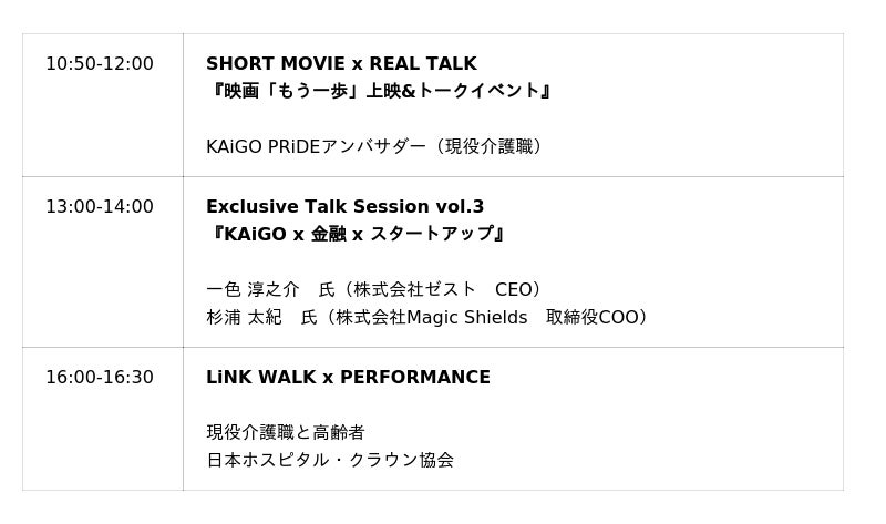 - グローバル・エイジング・インフルエンサーにも選ばれた佐々木淳氏・村田裕之氏両氏によるトークや「KAiGO x AI」をテーマに松尾研究所副社長 金剛洙氏らが語るトークなど、ここでしか聞けない価値あるトークセッション